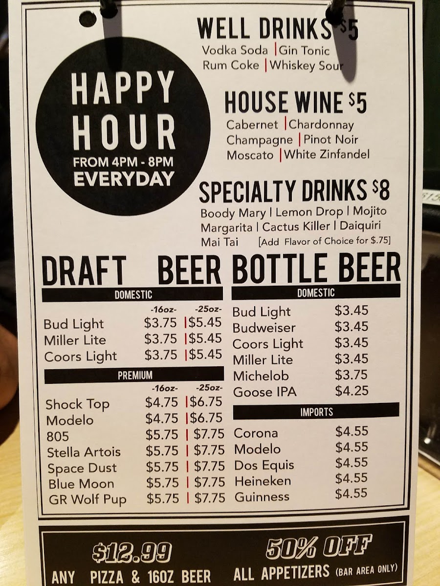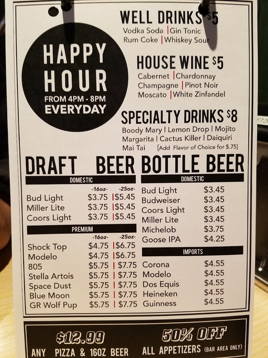 Classic red sauce, mozzarella cheese, sausage, pepperoni, ham and applewood bacon.